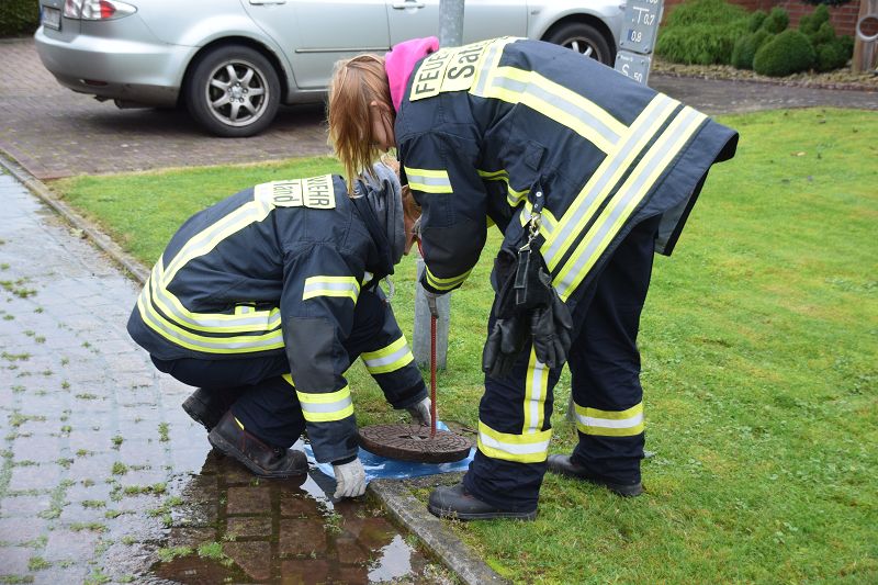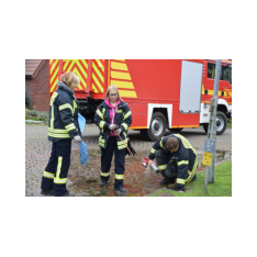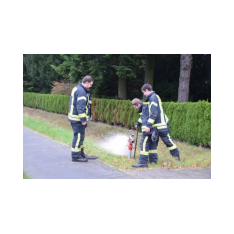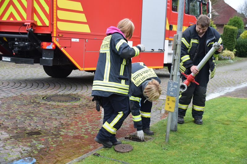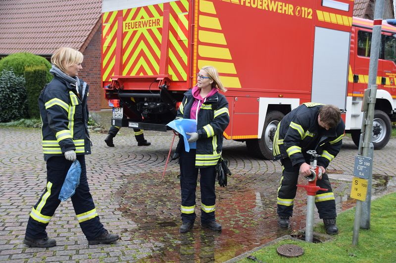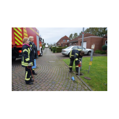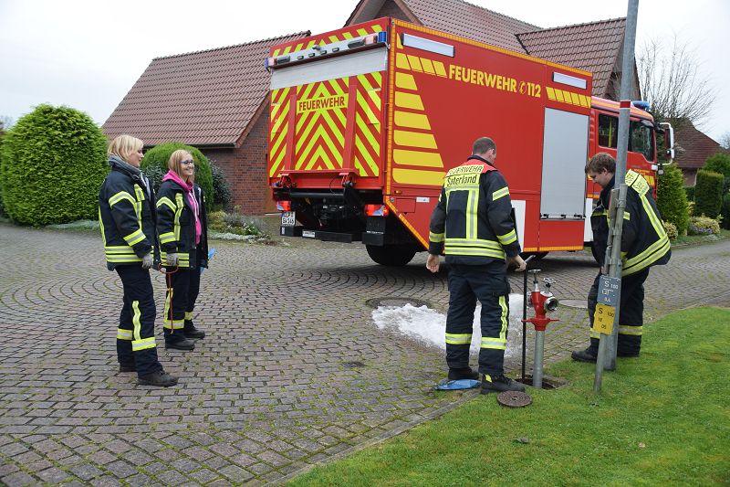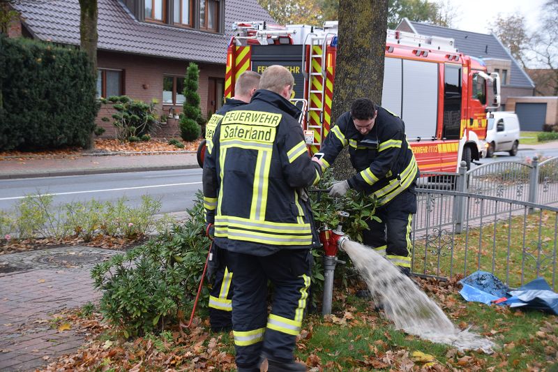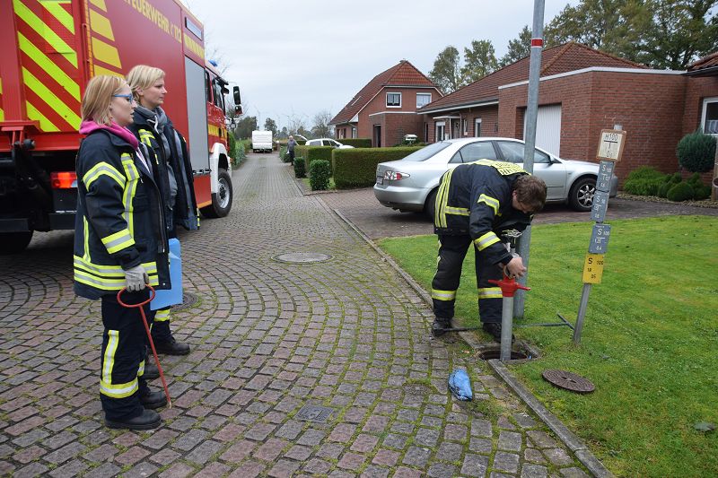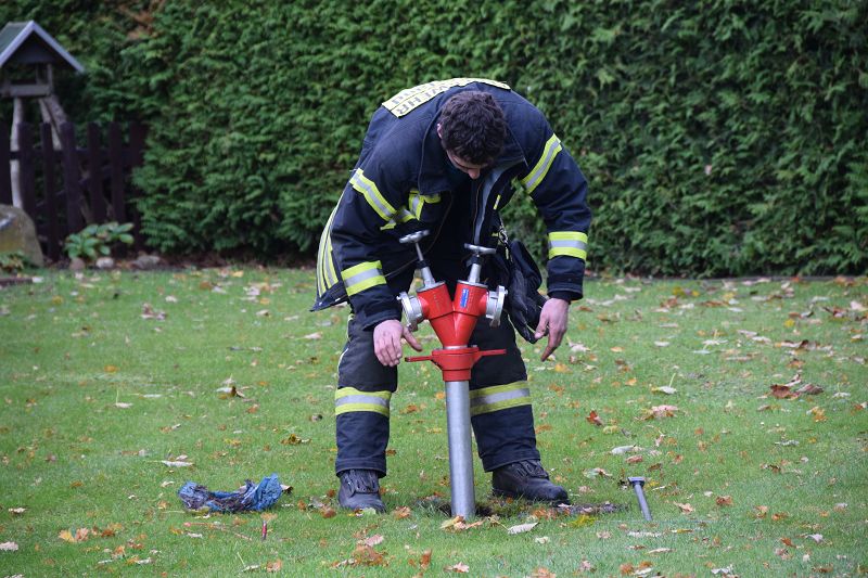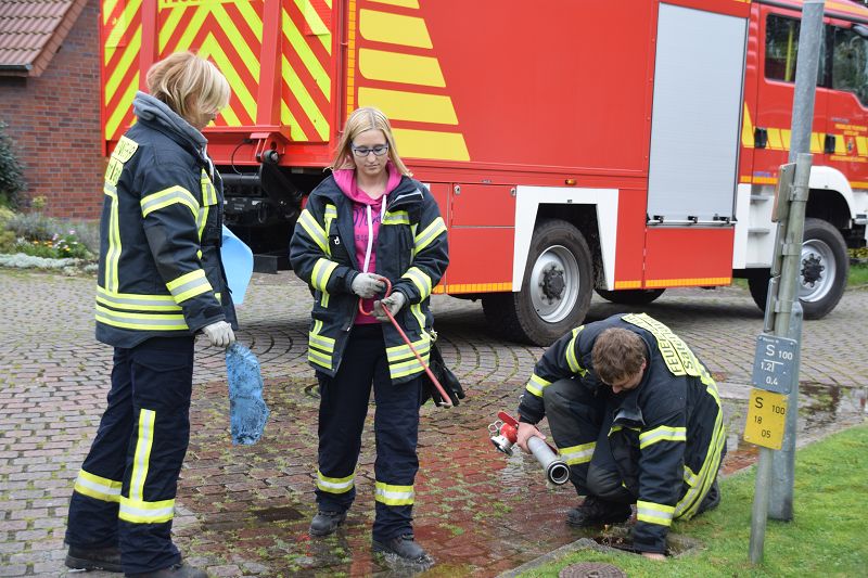 mal mussten die Kameraden der Feuerwehr Scharrel das Standrohr aufbauen, anschließen, Hydrant spülen wie hier an der Hauptstraße in Sedelsberg