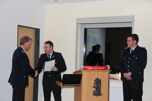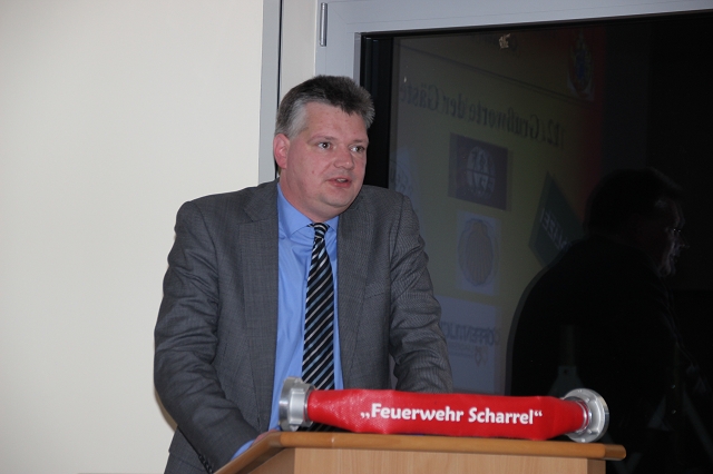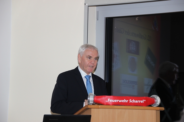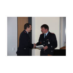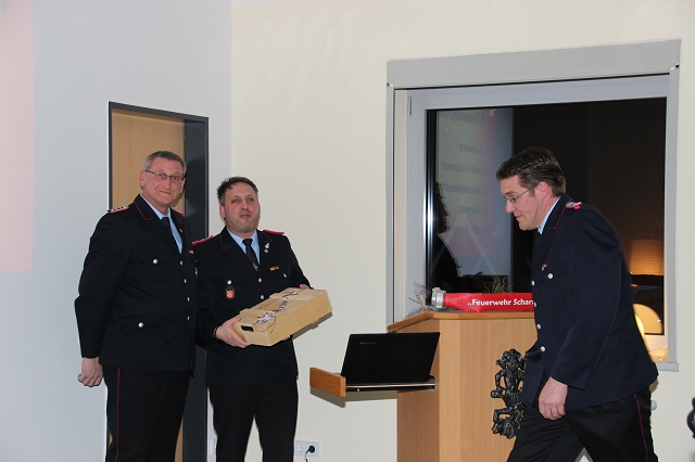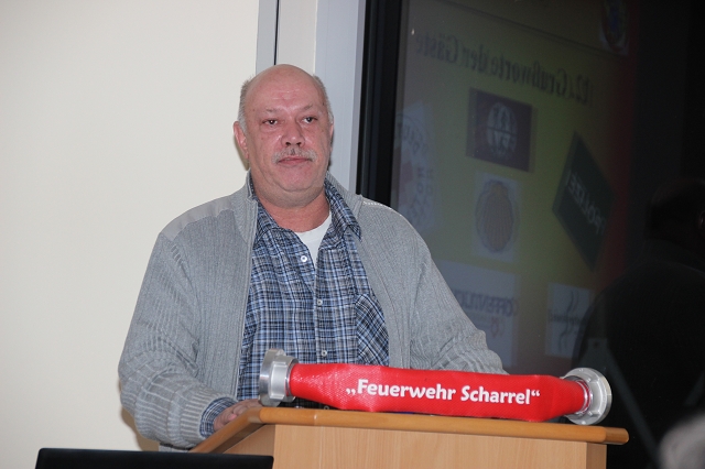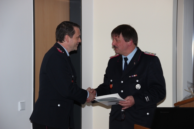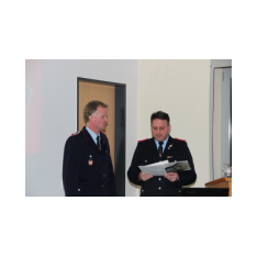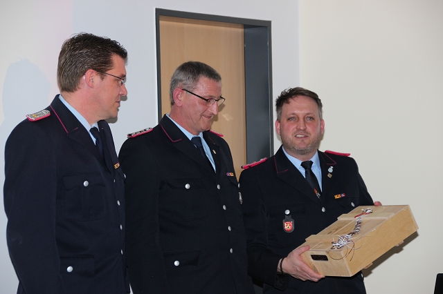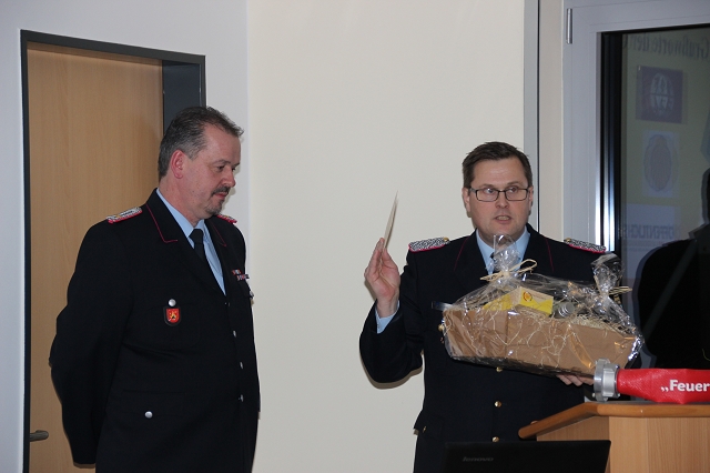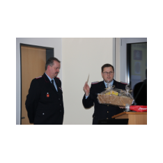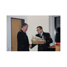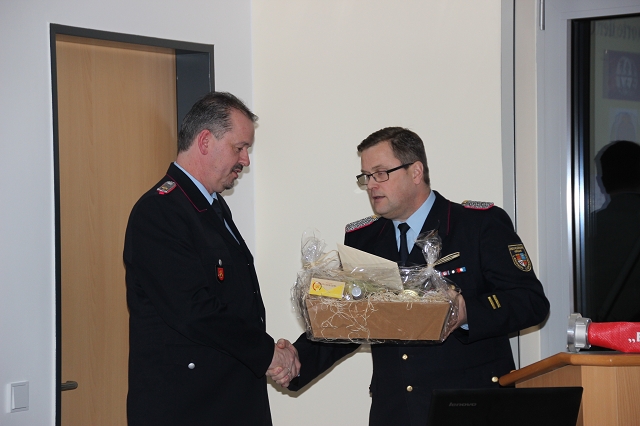 Arno Rauer stellv. Kreisbrandmeister brachte die besten Grüße des Kreisfeuerwehrverbandes mit und ließ es sich nicht nehmen einen kleinen Auszug des Verbandes bekannt zu geben. Da Wolfgang Fennen als Kreisausbilder ausschied überreichte stellv.KBM Rauer ein Präsentkorb und ein Gutschein der Kreisausbilder.