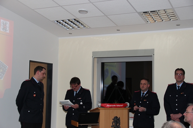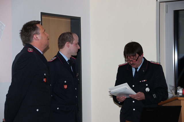 Von der Jugendfeuerwehr in die aktive Wehr, Vera Tameling und Kirsten Hesenius. Stefan Vocks und Hartmut Hanekamp beförderten: Marcel Janßen - Olliges vom Anwärter zum Feuerwehrmann, Kerstin Hesenius und Dorothe Fennen von Anwärterinnen zur Feuerwehrfrau, Thomas Deddens, Torsten Janßen und Johannes Alberding vom Oberfeuerwehrmann zum Hauptfeuerwehrmann, Matthias Tammling vom Hauptfeuerwehrmann zum 1. Hauptfeuerwehrmann. Weiter beförderte stellv. Gemeindebrandmeister Hans Martin Schütte: Christian Kuhl vom Hauptfeuerwehrmann zum Löschmeister, Matthias Blanke vom Hauptfeuerwehrmann zum Löschmeister, Dominik Niehaus vom Löschmeister zum Oberlöschmeister, Michael Wöste und Edmund Hanekamp vom Hauptlöschmeister zum Brandmeister.