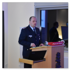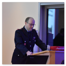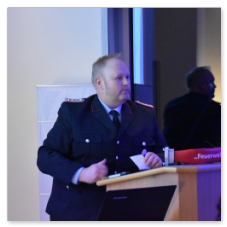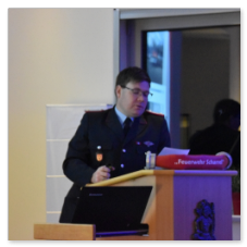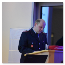 Stellv. Kreisbrandmeister Stefan Abshof bedankte sich für die geleistete Arbeit im Jahre 2023. Informationen LFV, OFV, KFV, es wird eine neue einheitliche Dienstuniform kommen, weiter soll es neue Dienstgrade geben. Ausbildung soll auf die Feuerwehren ausgelagert werden. Unsere Ausbilder in der FTZ werden Euch selbstverständlich unterstützen. Im Kreisfeuerwehrverband Cloppenburg sind jetzt ca. 1700 Einsatzkräfte, mit Altersabteilungen, Kinder- und Jugendfeuerwehren weit über 2000 Mitglieder. Es wurden im Jahre 2023 über 1500 Einsätze im Landkreis Cloppenburg abgeleistet. Abshof sprach auch die Waldbrandübung im September 2023 und das Hochwasser im Dezember 2023 – Januar 2024 an. Zum Schluss seines Grußwortes gratulierte er allen Beförderten/ Geehrten und sprach einen Gruß des Kreisfeuerwehrverbandes Cloppenburg und des Kreisbrandmeisters Arno Rauer und seinem Stellvertreter Franz-Josef Nording aus.