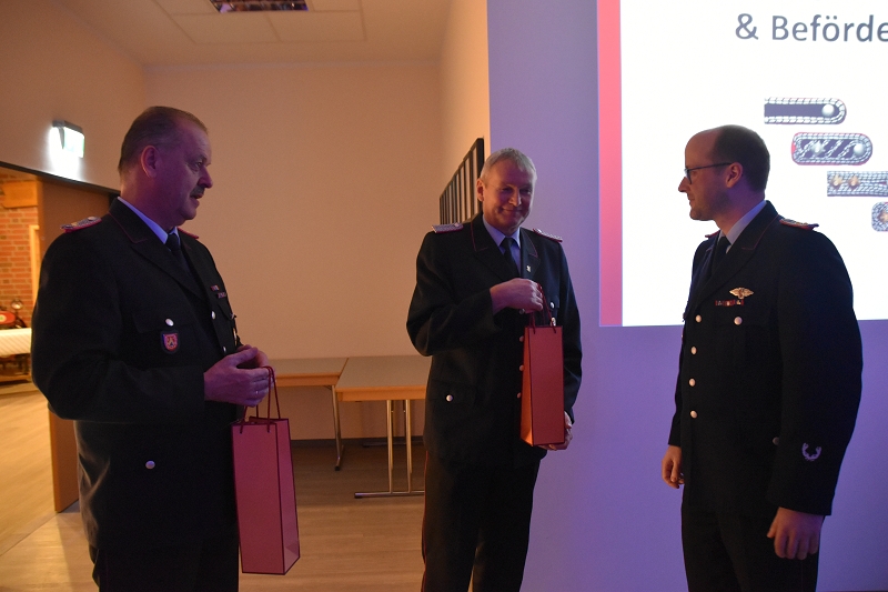 Hierbei möchte ich mich bei allen Kameradinnen und Kameraden bedanken, dass ihr euch immer die Zeit genommen habt an den Ausbildungsdiensten und Einsätzen teilzunehmen. Nur durch euch ist es möglich eine solch schlagkräftige Feuerwehr vorzuhalten. Denn nicht einer macht die Feuerwehr, sondern die Gemeinschaft, so Wöste.