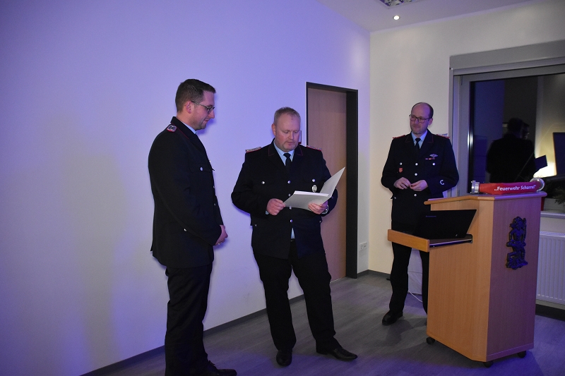 Bestellung Funktionsträger: Durch das freiwillige Ausscheiden und den Übertritt in die Alters- und Ehrenabteilung wurden einige Funktionen in der Wehrgliederung frei, die wir mit jungen Kameraden nachbesetzt haben. Die Wehrgliederung hängt seit dem 17.02.2024 in der Fahrzeughalle aus. Dann bestellte OBM Wöste hiermit die Funktionsträger gemäß Wehrgliederung erst einmal bis nächstes Jahr, turnusgemäß werden alle Funktionsträger im Jahr 2025 neu bestellt.