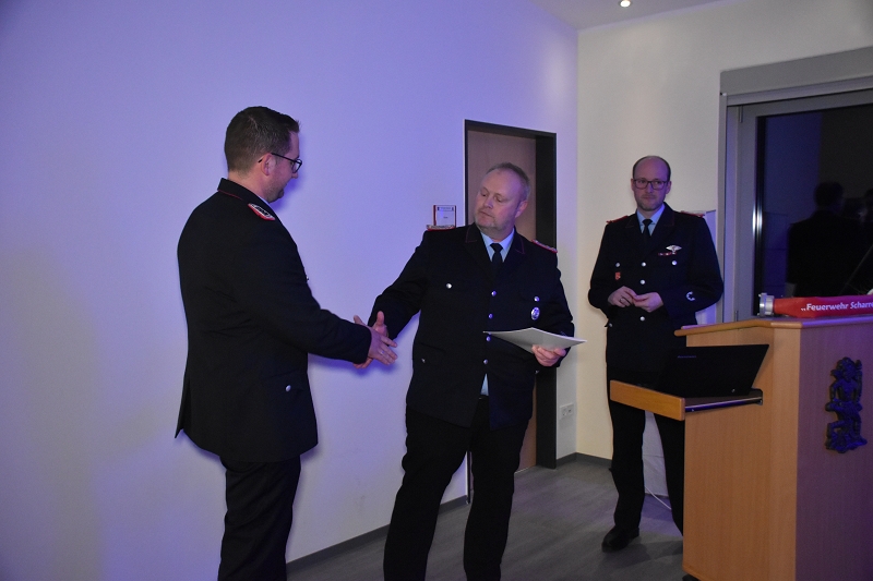 Zum Schluss bedankte sich Wöste bei Politik und Verwaltung der Gemeinde Saterland für die gute Zusammenarbeit. Bedanken möchte ich mich im Namen der Feuerwehr Scharrel bei unserem Bürgermeister Thomas Otto. Ein besonderer Dank geht an unseren Fachbereichsleiter Christof Naber, du hast immer ein offenes Ohr für unsere Probleme und Fragestellungen, die Zusammenarbeit mit dir ist immer konstruktiv und macht sehr viel Spaß, danke dafür. Für uns als Kameradinnen und Kameraden ist es wichtig, dass der Rat und die Verwaltung geschlossen hinter der Feuerwehr steht, dass ist für die Motivation der Einsatzkräfte sehr wichtig. Die Verwaltung und der Rat sehen die Notwendigkeit für Beschaffung und die Aufstellung ihrer freiwilligen Feuerwehr. Vielen Dank dafür! Bedanken möchte ich mich aber auch bei dem Gemeindekommando und besonders bei Kevin, Matthias und Timo von der FF Ramsloh, die Zusammenarbeit der beiden Feuerwehren kann ich nur als Vorbildlich beschreiben, so muss es sein und so macht es Spaß. Für mich ist das heute die letzte Generalversammlung als Ortsbrandmeister, meine Amtszeit endet zum 31. Juli dieses Jahrs. Ich möchte mich noch einmal bei Euch allen für die gute Zusammenarbeit in den letzten 6 Jahren bedanken. Mehr möchte ich aber auch gar nicht sagen, ich denke wir werden uns zu einem späteren Zeitpunkt noch einmal sehen, so Ortsbrandmeister Michael Wöste und schloss gegen 21:45 Uhr die Versammlung.
