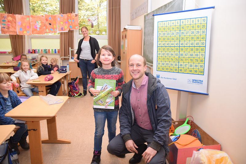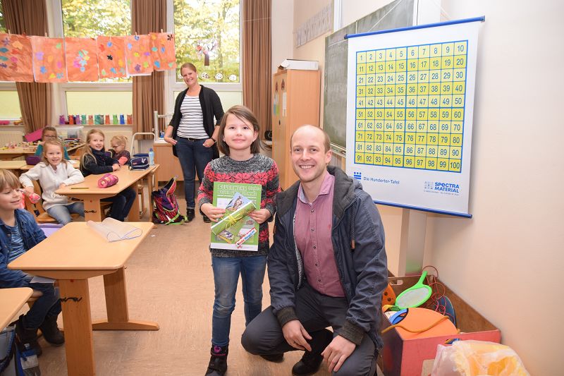 Gewinnerin Greta Wassermann (Grundschule Sedelsberg) und stellv. OBM Michael Wöste