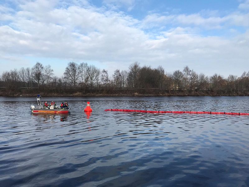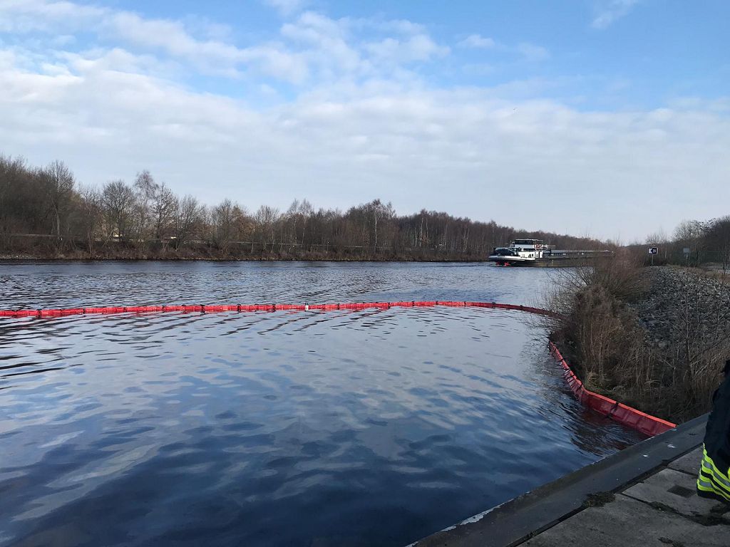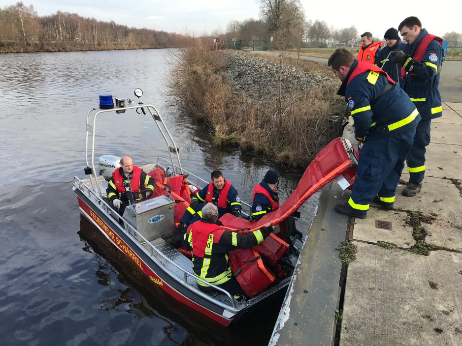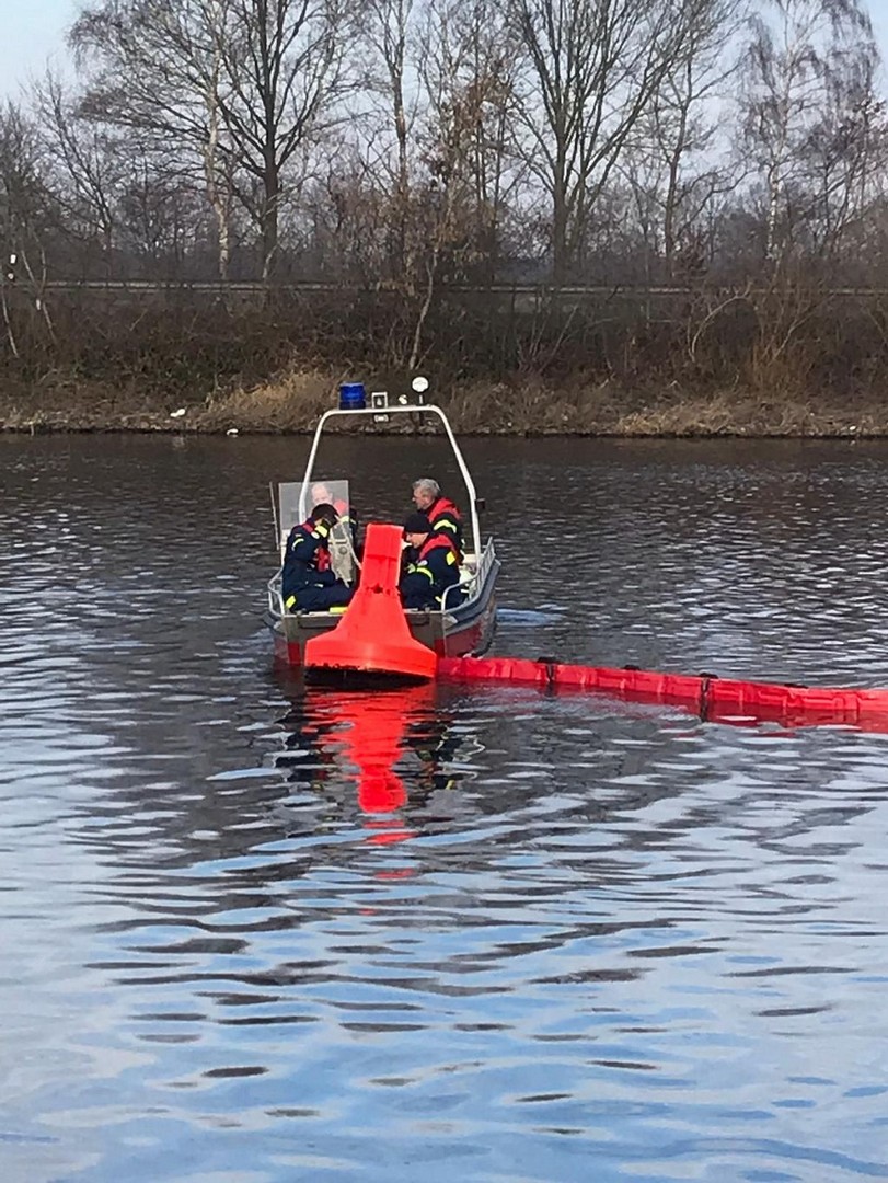Zusammen mit dem THW Cloppenburg legte die Feuerwehr Scharrel Ölsperren auf den Küstenkanal
