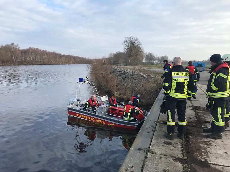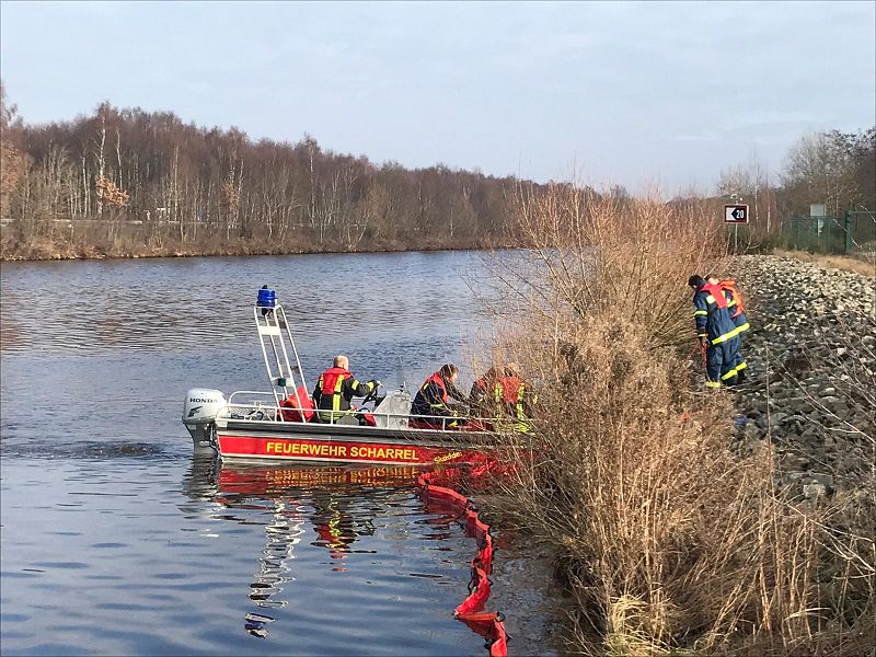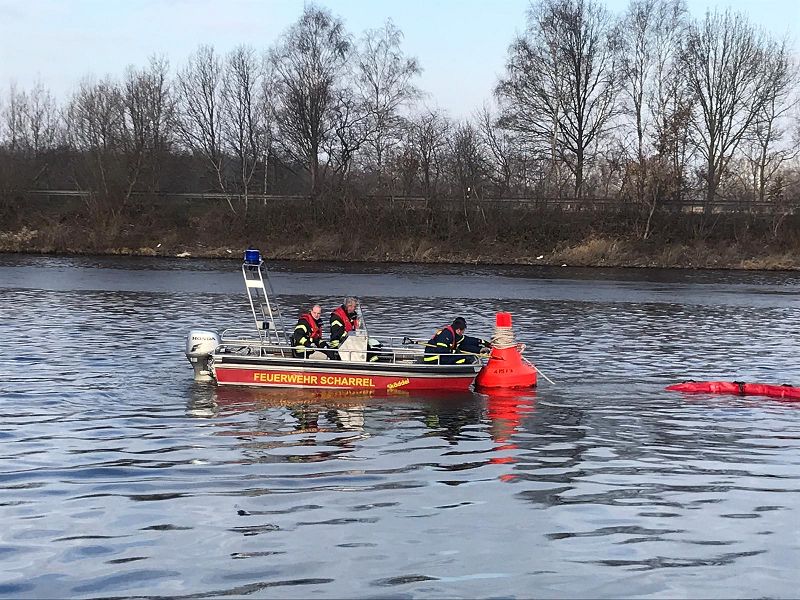 Saterland/ Sedelsberg – Am Donnerstag, den 21.2.19 wurde die Feuerwehr Scharrel und das THW Cloppenburg gegen 08:14 Uhr zum C-Port nach Sedelsberg gerufen, gemeldet wurde von der GOL eine ca. 400 m lange Ölspur auf dem Küstenkanal. Beim Eintreffen der Kameraden der Feuerwehr Scharrel wurde sofort das Rettungsboot mit dem Wechsellader zu Wasser gelassen. Somit wurde mit Hilfe des THW Cloppenburg entgegen dem Wind eine Ölsperre gesetzt, damit sich der Ölfilm sammelte. Danach wurde die Flüssigkeit sofort abgesaugt. Gegen 11:20 Uhr war für die Kameraden der FF Scharrel Einsatzende.