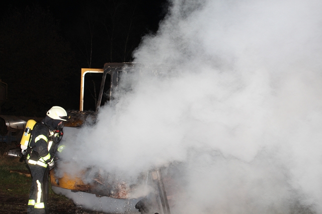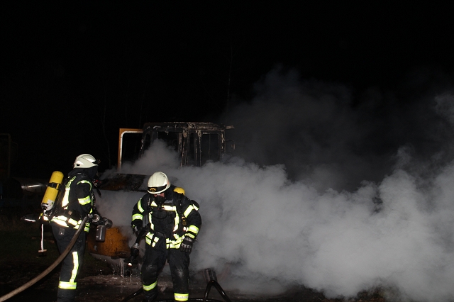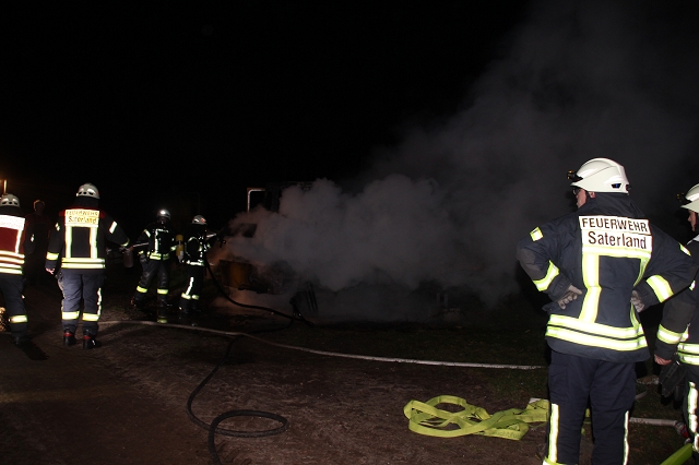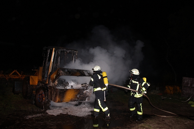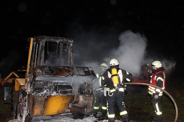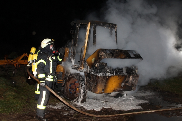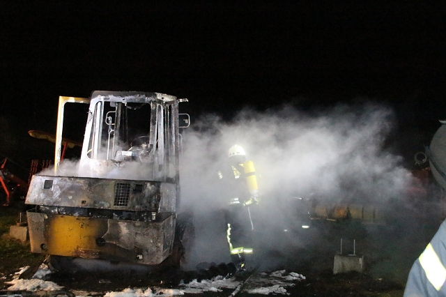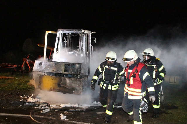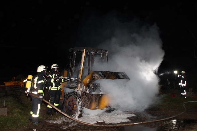 Zu einem Radladerbrand wurde die Feuerwehr Scharrel am Dienstag gegen 16:57 Uhr in die Westermoorstraße nach Scharrel gerufen. Ein Landwirt wollte den Radler nach Gebrauch abstellen, aus noch ungeklärter Ursache fing das Fahrzeug aber an zu brennen. Beim eintreffen der Wehr stand der Radlader schon in Vollbrand, unter Atemschutz wurde das Fahrzeug schnell gelöscht. Alarmiert wurde auch die Feuerwehr Ramsloh, diese brauchte aber nicht mehr ausrücken. Die Feuerwehr Scharrel war mit 5 Fahrzeugen im Einsatz
