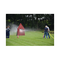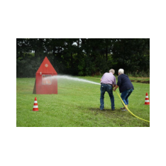 4. Und einen Löschangriff starten (Schlauch zu einem Holzhaus ziehen und eine Klappe treffen, bis diese umkippt)
