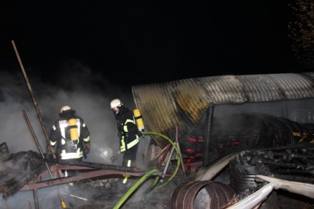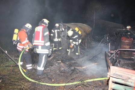 Zu einem Scheunenbrand nach Reekenfeld in die Schleusenstraße wurde die Feuerwehr Scharrel, Barßel, Friesoythe und der ABC Dienst Nord am Freitag gegen 20:28 Uhr alarmiert. Beim Eintreffen der Wehren stellte sich aber heraus das es nicht ein Großbrand war wie gemeldet, sonder im hinteren Bereich des Hofes eine Holzgarage und ein Hänger am brennen war. Durch das schnelle Eingreifen der Feuerwehren die unter Atemschutz arbeiten mussten wurde schlimmeres verhindert. Das Feuer wurde nach kurzer Zeit gelöscht, die Kameraden aus Scharrel und Friesoythe und der ABC Dienst Cloppenburg rückten ca. gegen 22:00 Uhr wieder ab.