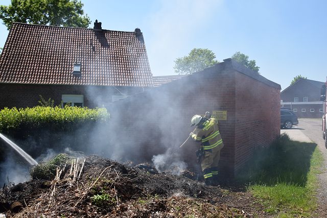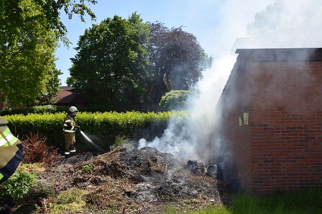 Mit einem c-Schlauch wurde das Feuer schnell gelöscht, einige Kameraden lockerten den Haufen mit Pforken, damit man besser an die Glutnester kam. Schaden an Gebäudeteilen gab es nicht. Im Einsatz war die Feuerwehr Scharrel und die Polizei.