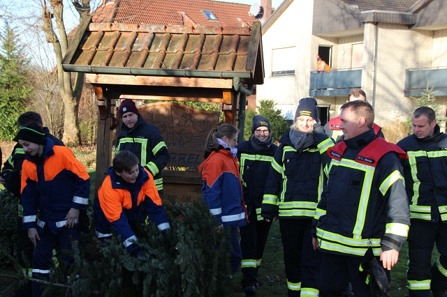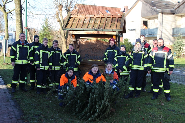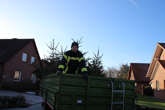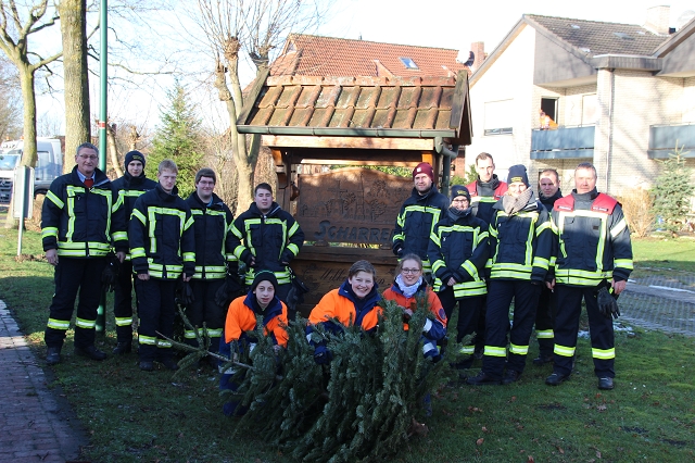 Wie in den vergangenen Jahren trafen sich die Mitglieder der Jugendfeuerwehr Scharrel und der aktiven Wehr am Samstag den 09.01.2016 gegen 08:15 Uhr im Feuerwehrhaus am Raiffeisendamm. Nach einem gemeinsamen Frühstück mit Rührei, Brötchen und leckeren Kaffee wurden dann alle Kameraden in Gruppen aufgeteilt, wo jede Gruppe einen Straßenplan bekam und diesen abfahren musste. An den Straßen lagen wieder einmal sehr viele Tannenbäume die Sie aufsammeln mussten. Das Wetter spielte in diesem Jahr sehr gut mit, es war trocken und der Regen blieb fern. Gegen 13:00 Uhr gab es für alle Beteiligten noch eine deftige Erbsensuppe, so konnten Sie nach dem Mittag noch einmal unterwegs. Sehr viele Mitbürger waren bereit der Wehr eine kleine Spende zu überreichen.