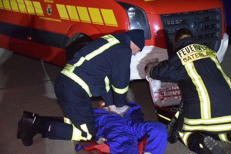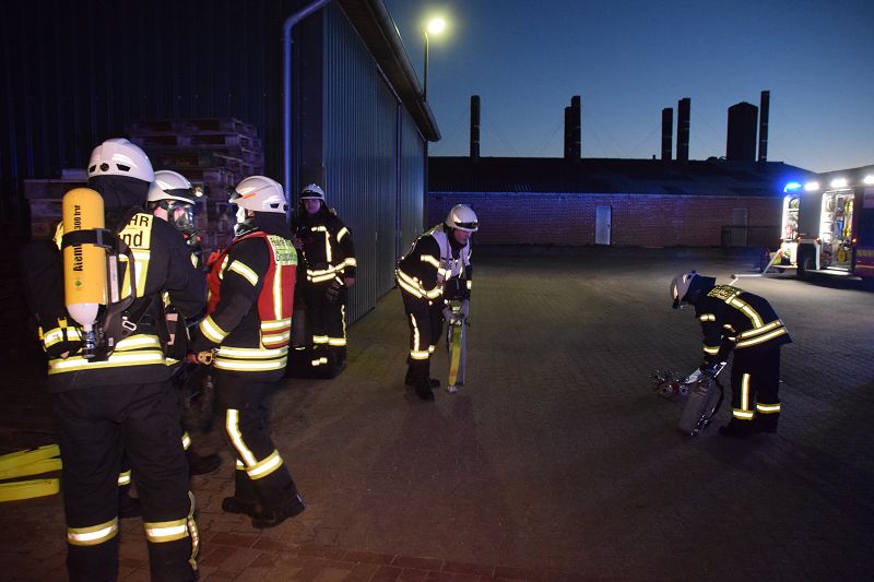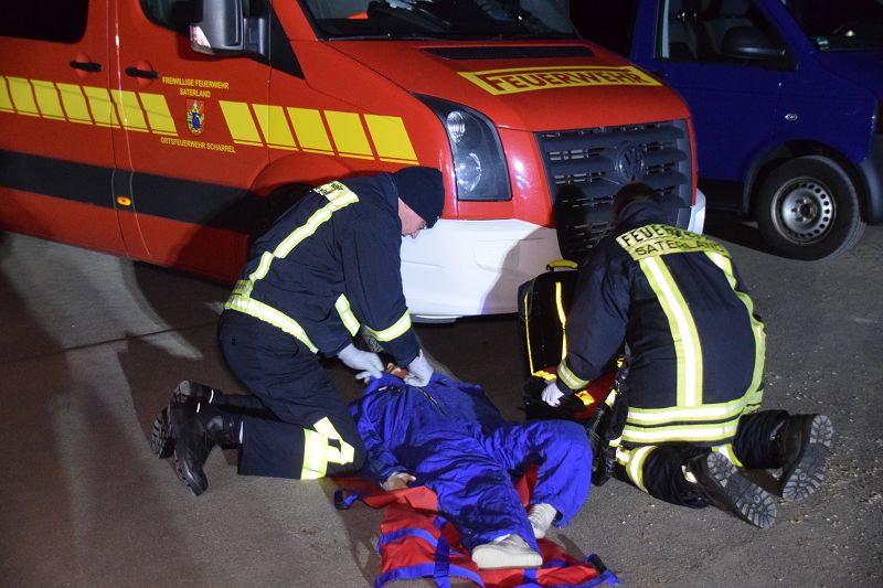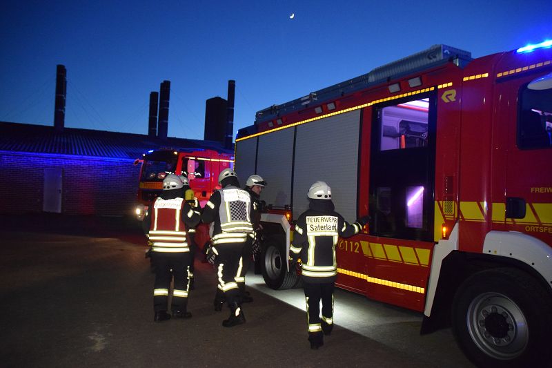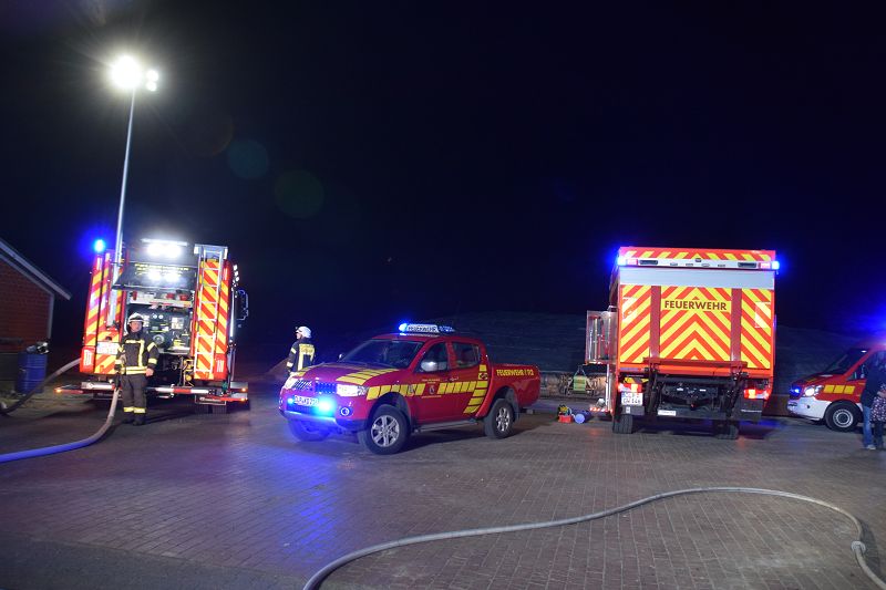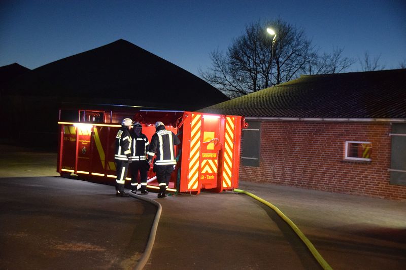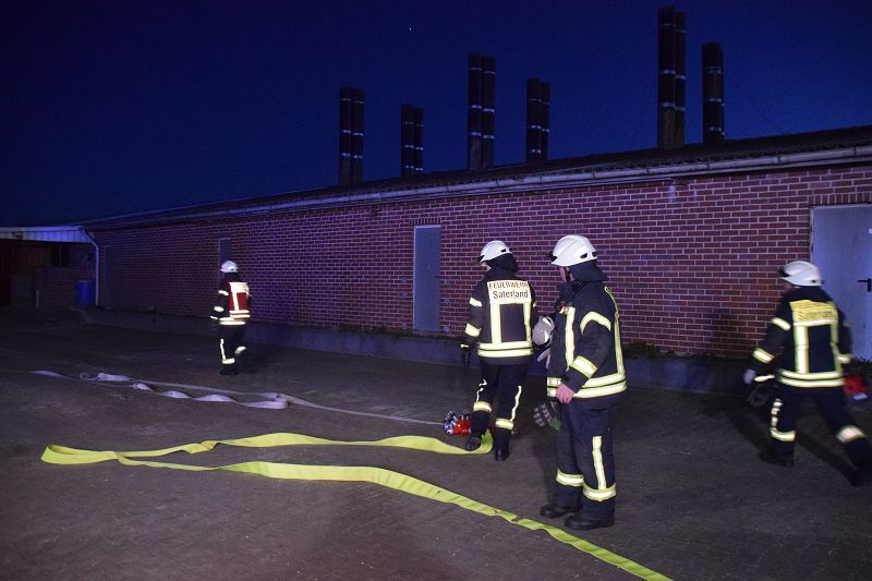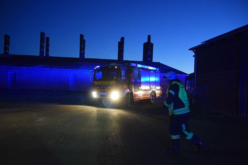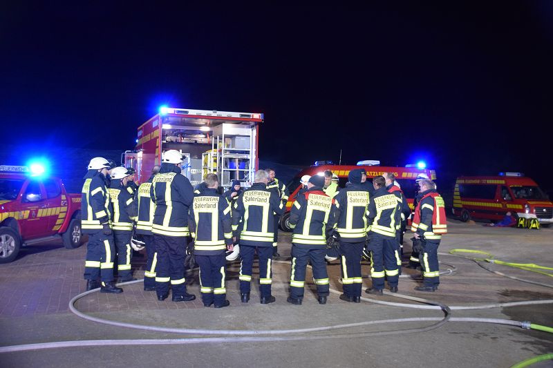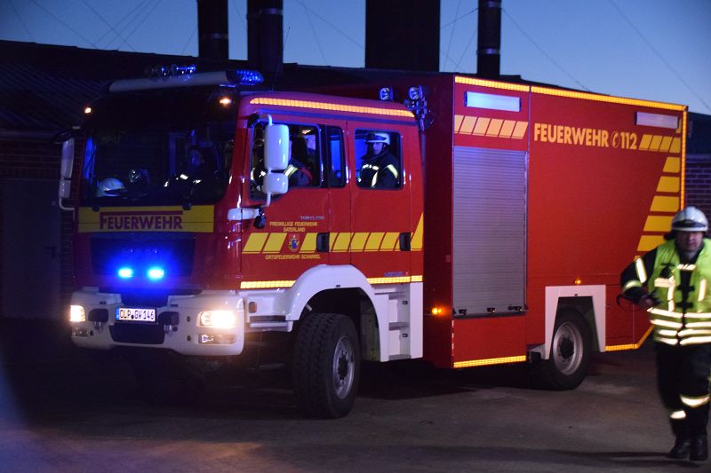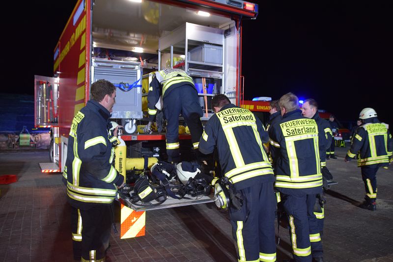 Saterland- Scharrel / LK CLP – Zu einer Zugübung wurde die die Feuerwehr Scharrel am Dienstag gegen 19:10 Uhr zum Hof Gehlenborg in die Birkhahnstraße nach Scharrel gerufen. Laut Meldung eines PKW Fahrers auf der B 72 war Verdächtige Rauchentwicklung gemeldet worden. Das Szenario war wie folgt: In einer Maschinenhalle ist ein Feuer ausgerochen, im Inneren der Halle wird eine Person vermisst. Da noch mehr Stallgebäude in unmittelbarer Nähe stehen und sich eine Biogasanlage auf dem Hof befindet müssen diese vor dem Feuer geschützt werden. Zugführer Edmund Hanekamp schickte sofort ein Angriffstrupp unter Atemschutz in die Maschinenhalle um die vermisste Person aus der Maschinenhalle zu holen. Dies stellte sich aber als sehr schwierig raus, da das Gebäude durch das Feuer komplett verqualmt war. Der zweite Angriffstrupp kümmerte sich um das Feuer, was schnell gelöscht wurde. Die vermisste Person wurde aber trotz allem sehr schnell gefunden und dem First Responder Team übergeben. Die anderen eingesetzten Feuerwehrkameraden waren schon dabei die Wasserversorgung zu verlegen, hier wurde der neue AB Tank eingesetzt. Um die angrenzenden Stallgebäude und die Biogasanlage vor dem Flammen zu schützen wurde eine Riegelstellung vorgenommen. Nach ca. 1,5 Std. wurde die Übung beendet. Ortsbrandmeister Stefan Vocks und sein stellv. Michael Wöste lobten nach der Übung die Kameraden der Feuerwehr Scharrel für die gute Arbeit beim Einsatz. Ein großer Dank geht hier noch einmal an die Familie Gehlenborg die Ihren Hof für die Feuerwehrübung zur Verfügung gestellt hat.