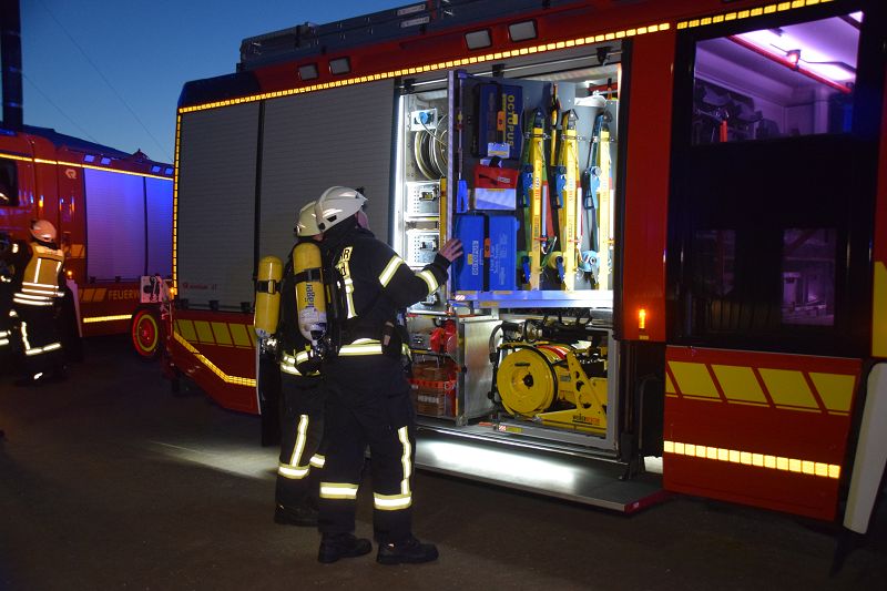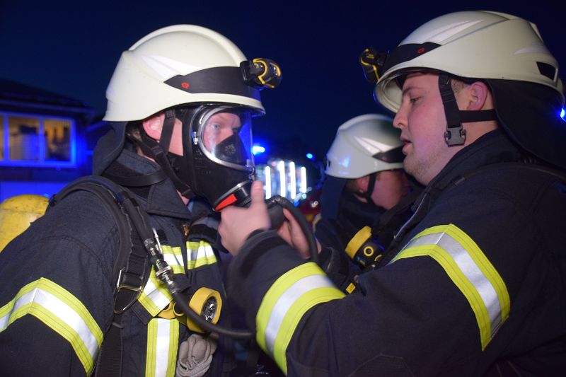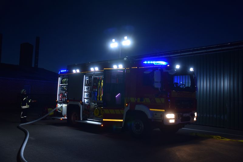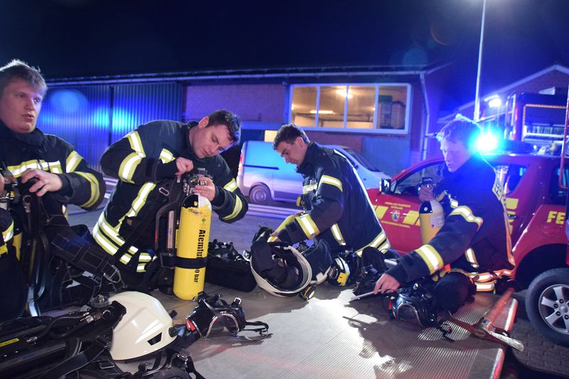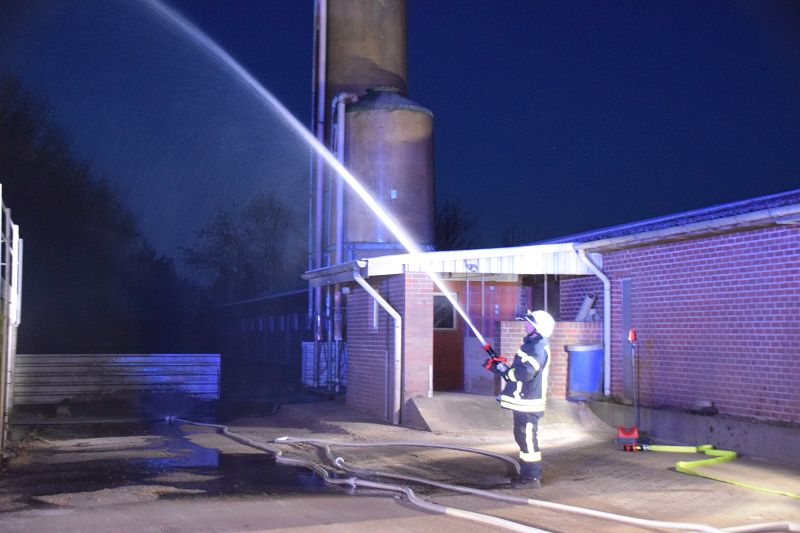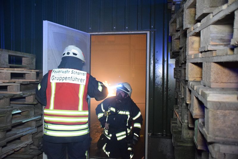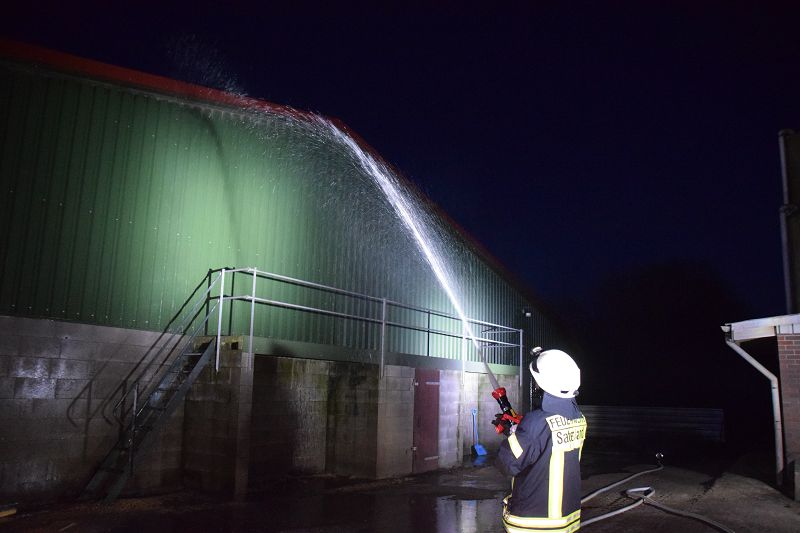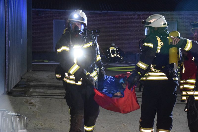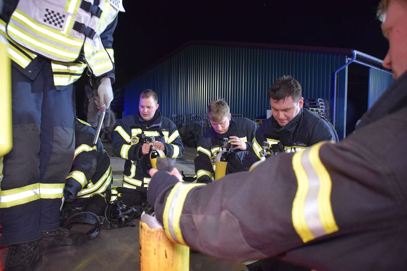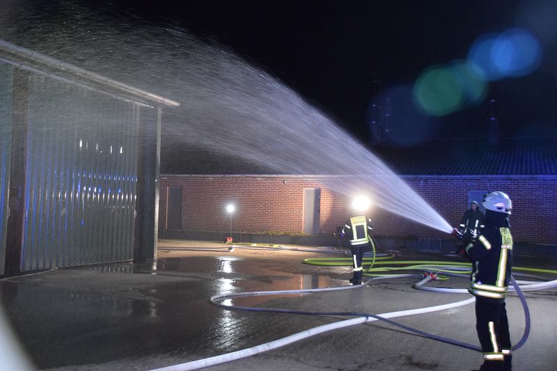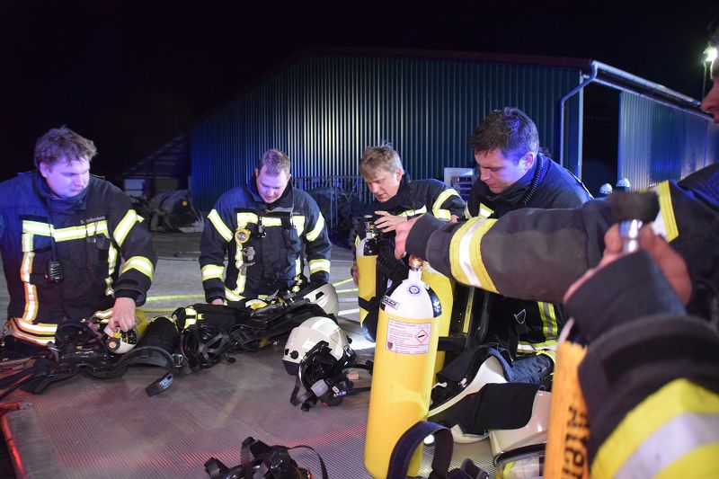 Saterland- Scharrel / LK CLP – Zu einer Zugübung wurde die die Feuerwehr Scharrel am Dienstag gegen 19:10 Uhr zum Hof Gehlenborg in die Birkhahnstraße nach Scharrel gerufen. Laut Meldung eines PKW Fahrers auf der B 72 war Verdächtige Rauchentwicklung gemeldet worden. Das Szenario war wie folgt: In einer Maschinenhalle ist ein Feuer ausgerochen, im Inneren der Halle wird eine Person vermisst. Da noch mehr Stallgebäude in unmittelbarer Nähe stehen und sich eine Biogasanlage auf dem Hof befindet müssen diese vor dem Feuer geschützt werden. Zugführer Edmund Hanekamp schickte sofort ein Angriffstrupp unter Atemschutz in die Maschinenhalle um die vermisste Person aus der Maschinenhalle zu holen. Dies stellte sich aber als sehr schwierig raus, da das Gebäude durch das Feuer komplett verqualmt war. Der zweite Angriffstrupp kümmerte sich um das Feuer, was schnell gelöscht wurde. Die vermisste Person wurde aber trotz allem sehr schnell gefunden und dem First Responder Team übergeben. Die anderen eingesetzten Feuerwehrkameraden waren schon dabei die Wasserversorgung zu verlegen, hier wurde der neue AB Tank eingesetzt. Um die angrenzenden Stallgebäude und die Biogasanlage vor dem Flammen zu schützen wurde eine Riegelstellung vorgenommen. Nach ca. 1,5 Std. wurde die Übung beendet. Ortsbrandmeister Stefan Vocks und sein stellv. Michael Wöste lobten nach der Übung die Kameraden der Feuerwehr Scharrel für die gute Arbeit beim Einsatz. Ein großer Dank geht hier noch einmal an die Familie Gehlenborg die Ihren Hof für die Feuerwehrübung zur Verfügung gestellt hat.