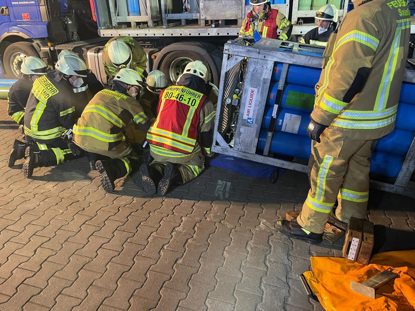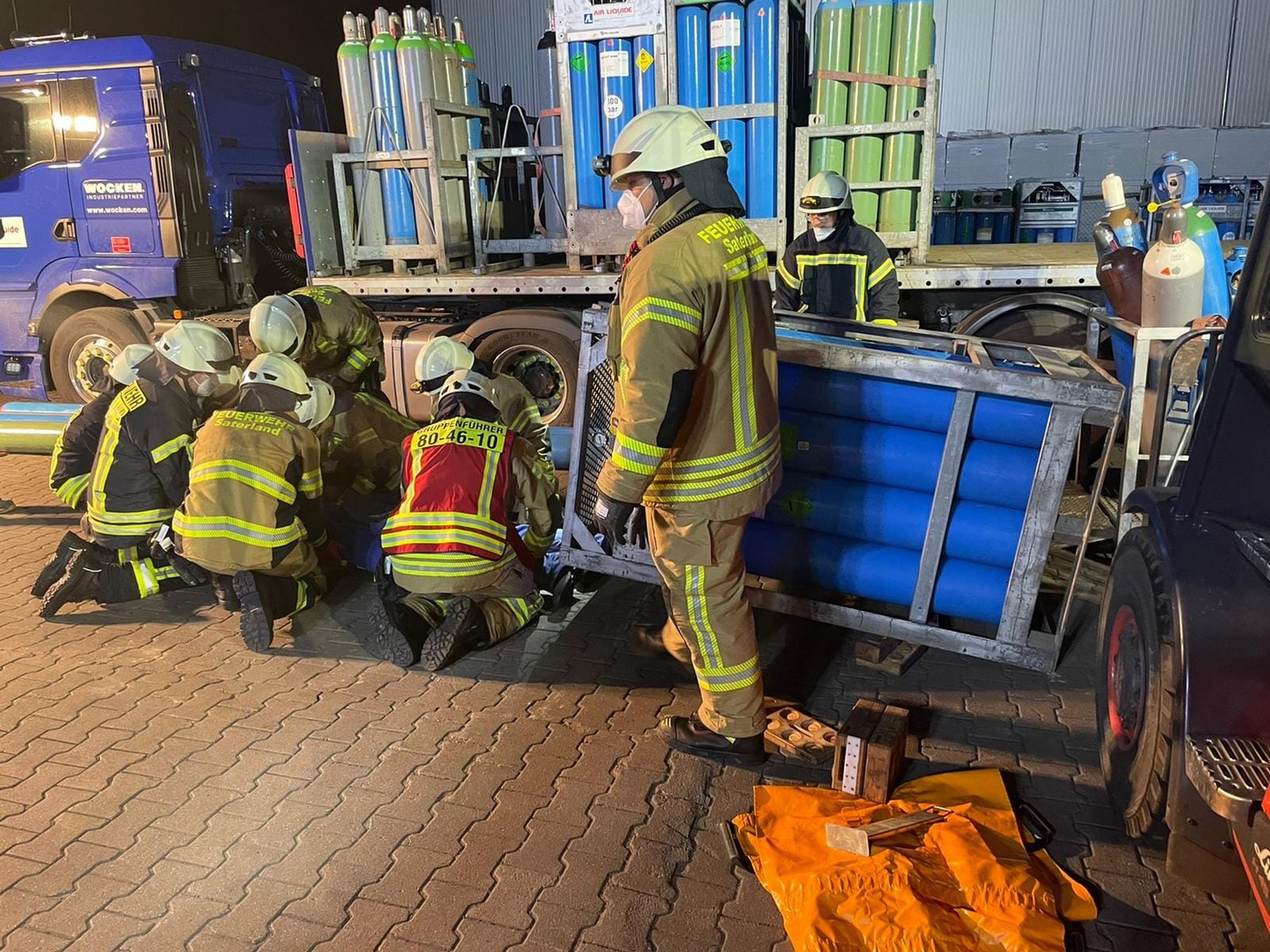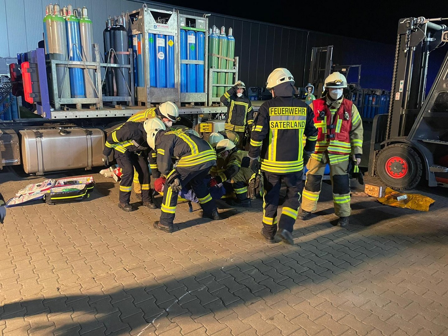 Am Dienstag, den 22.03.2022 fand auf dem Gelände der Firma Wocken eine Zugübung der Feuerwehr Scharrel statt. Das Szenario war wie folgt: Beim Abladen von Gasflaschen mit einem Gabelstapler, kippte die komplette Ladung um und begrub eine Person unter sich. Jetzt hieß es für die Kameradinnen und Kameraden, die Person schnellstens zu retten und aus dem Gefahrenbereich zu bringen. Die Übung wurde erfolgreich von den Kameradinnen und Kameraden durchgeführt, die Person wurde schnellstens gerettet und dem Rettungsdienst übergeben.