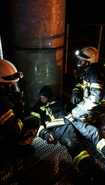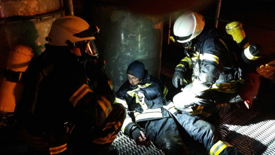 Der Rettungstrupp kümmerte sich um den Ohnmächtigen Mitarbeiter