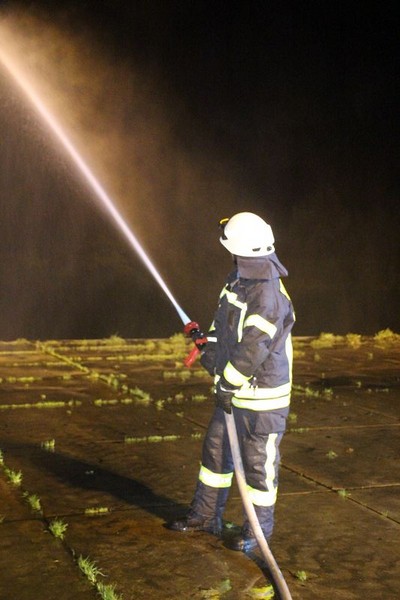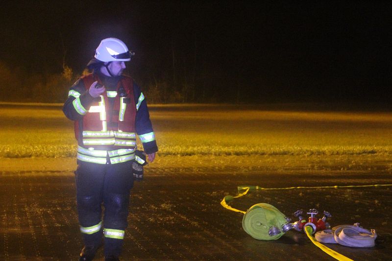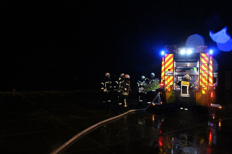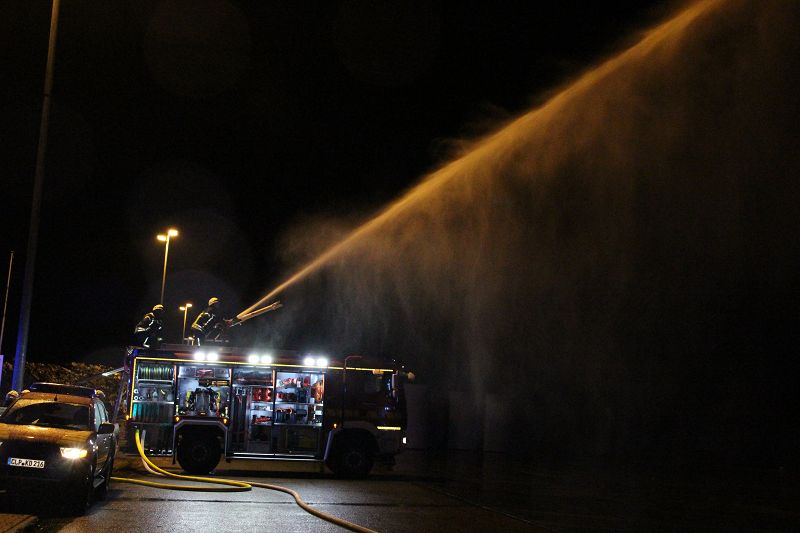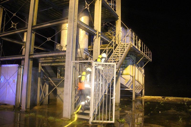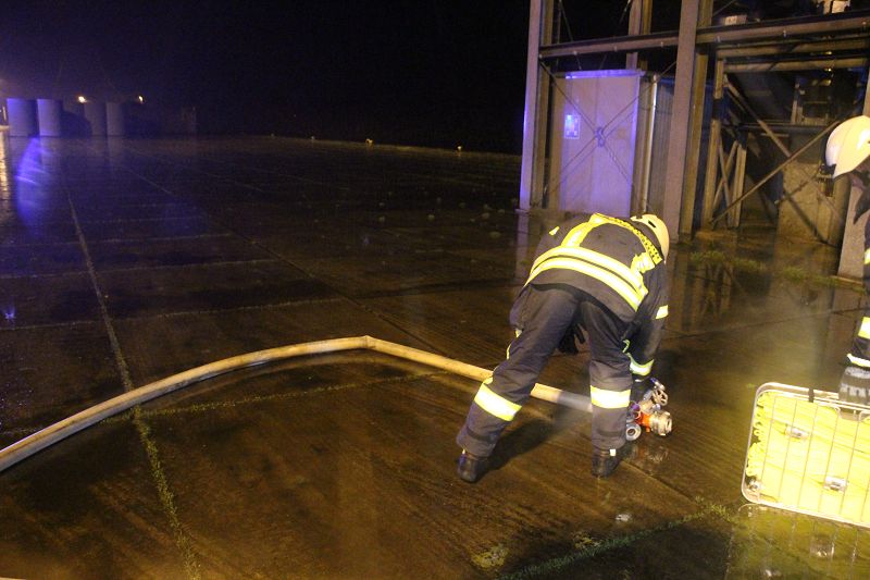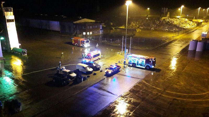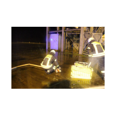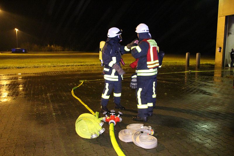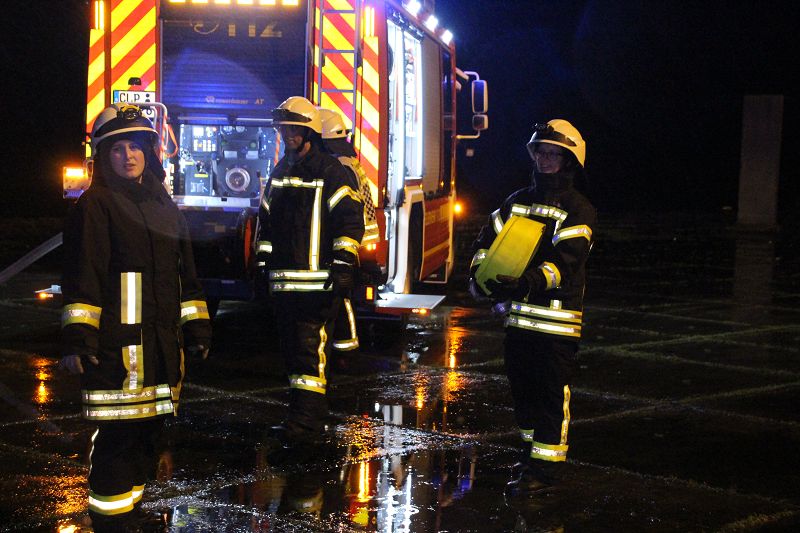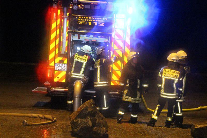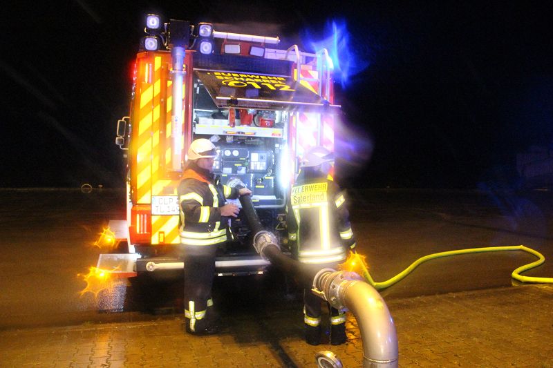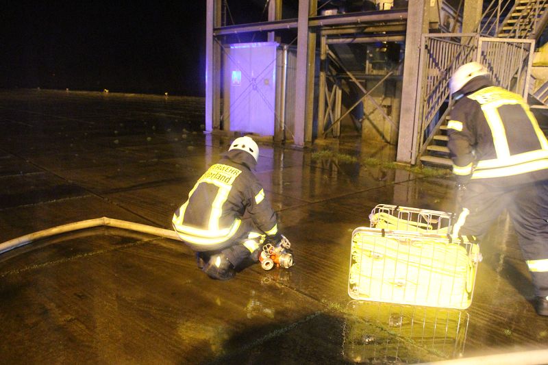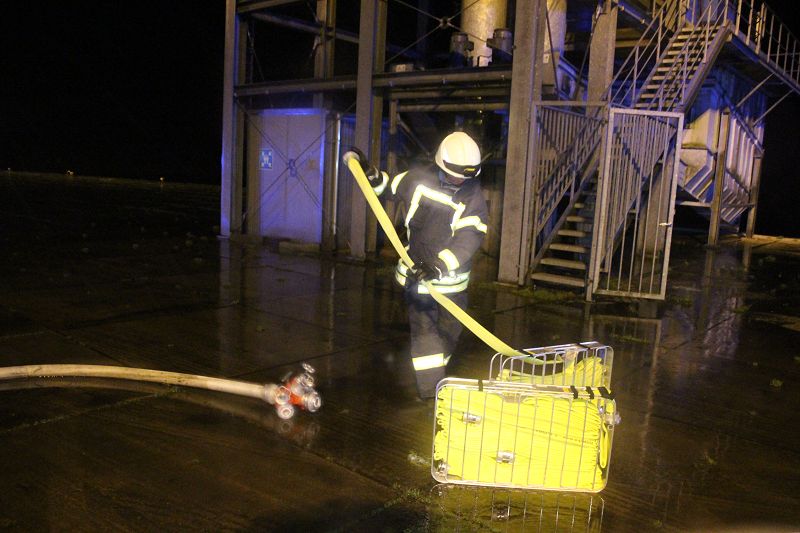 Saterland/ Scharrel LK Cloppenburg - Zu einer Zugübung am 21.11.2017 ging es für die Kameraden/ innen der FF Scharrel zum C-Port nach Sedelsberg. Hier wurde von der Firma Bröring das Objekt den Feuerwehrleuten zu der Übung zur Verfügung gestellt. Folgendes Szenario wurde geübt: Ein Binnenschiff das bei der Firma Bröring am C-Port Ladung löscht drückt diese unter Druck in eine Förderschnecke. Nach ca. einer halben Std. wird die Förderschnecke so heiß, dass ein Feuer ausbricht. In rascher Geschwindigkeit verbreitet sich das Feuer so heftig das die komplette Förderstrecke am Brennen war. Ein Mitarbeiter der kurz vorher auf den 12m hohen Förderturm ging, um zu schauen was für ein Problem es gab wurde Ohnmächtig. Beim eintreffen der Feuerwehr war die Rettung der Personen an erster Stelle, sofort wurde ein Rettungstrupp unter Atemschutz auf den Förderturm geschickt, weiterhin machte sich ein Sicherungstrupp fertig. Die vermisste Person wurde schnell gefunden und dem DRK übergeben. Weitere Kameraden führten den Löschangriff durch, so wurde das Feuer sehr schnell gelöscht. Wichtiger Punkt war das schützen der anliegenden Gebäude vor den Flammen, hier wurde mit einem Monitor von einem TLF gearbeitet. Mehrere Hundert Meter Schläuche wurden verlegt, so dass die Wasserversorgung gesichert war. Bei einer kurzen Nachbesprechung vor Ort, lobte Ortsbrandmeister Stefan Vocks alle Kameraden für die gute Zusammenarbeit. Auch Brandschutzbeauftragter Herr Fuchs von der Firma Rhenus und zwei Mitarbeiter der Firma Bröring waren sehr zufrieden mit der gelungenen Übung.